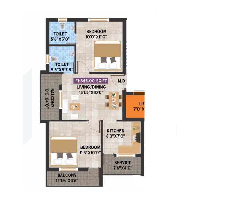 The residential units are constructed with unit sizes ranging from 845 sq ft to 850 sq ft, offering maximum space and allowing the buyer to customise the interior with their personal belongings. ACS Elite in Kundrathur offers 6 exclusive units that allow the buyer to select their desired space to live in. It allows a comfortable lifestyle where every resident gets the opportunity to develop their lifestyle.