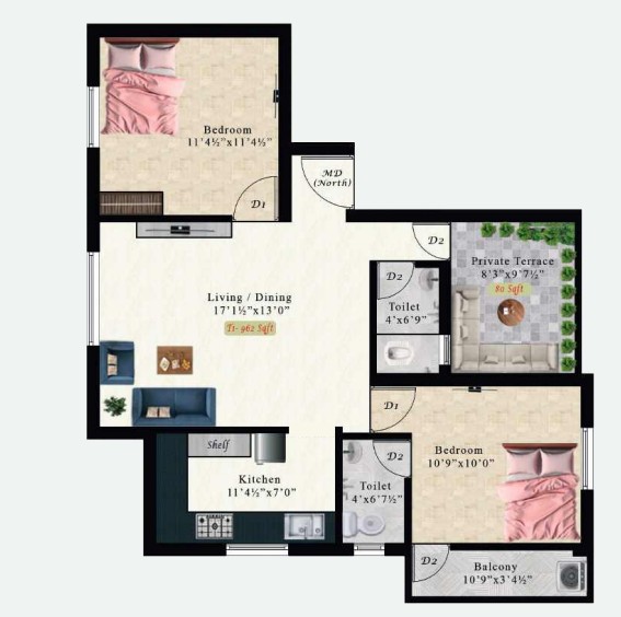 Houses to enjoy the ultimate comfort are being shaped at K Malachite. This mid-rise project by AK Builders is located in well-established areas of Pammal, Chennai. The peaceful residential pocket gives more comfort for every resident to stay longer. Every living space comes in 2 and 3 BHK configurations in a small parcel of land. This shows the efficient utilisation of the area and craftsmanship. By doing so, they are allowing modern families to thrive in thoughtfully planned homes. The apartment units range from 712 sq. ft. to 1071 sq. ft., enclosed with essential amenities and daily necessities for a better lifestyle within 0.05 acres. Whether you’re a young family or one that is growing, K Malachite in Pammal gives you a desirable floor plan to celebrate your new milestone. Life here is uninterrupted across 6 units, as there are round-the-clock services to make this community highly functional. With sustainable features, you’re moving towards eco-conscious living. The prime location offers a strong connection to the rest of the city and proximity to the airport if you're a frequent traveller.