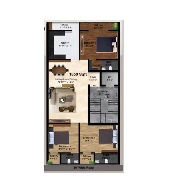 Unit sizes of the Anugragha RR Tower ranges from 1850 Sq.Ft .