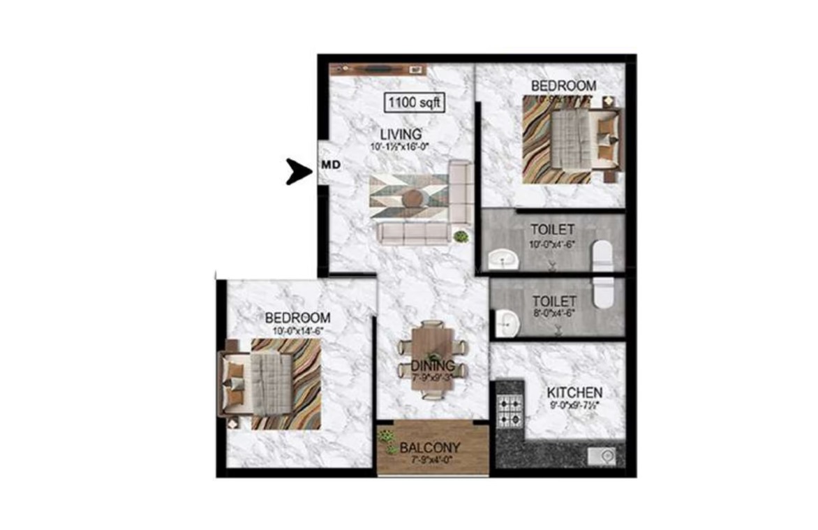 Unit sizes of the Anugragha SS Paradise ranges from 1100 Sq.Ft .