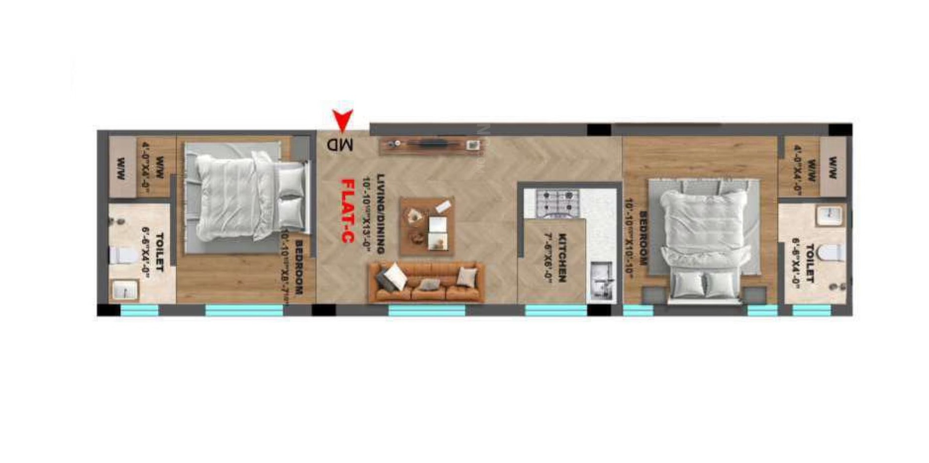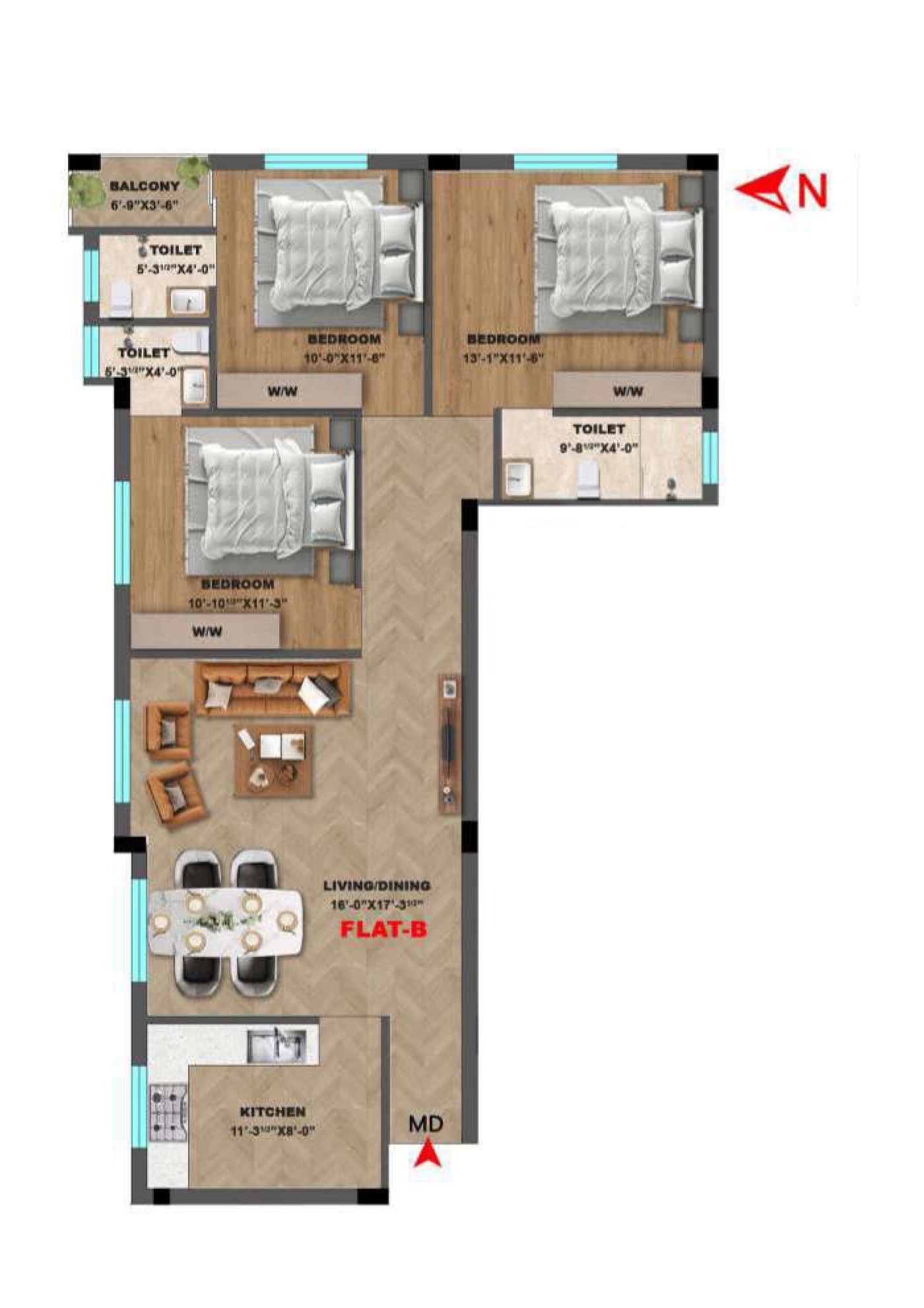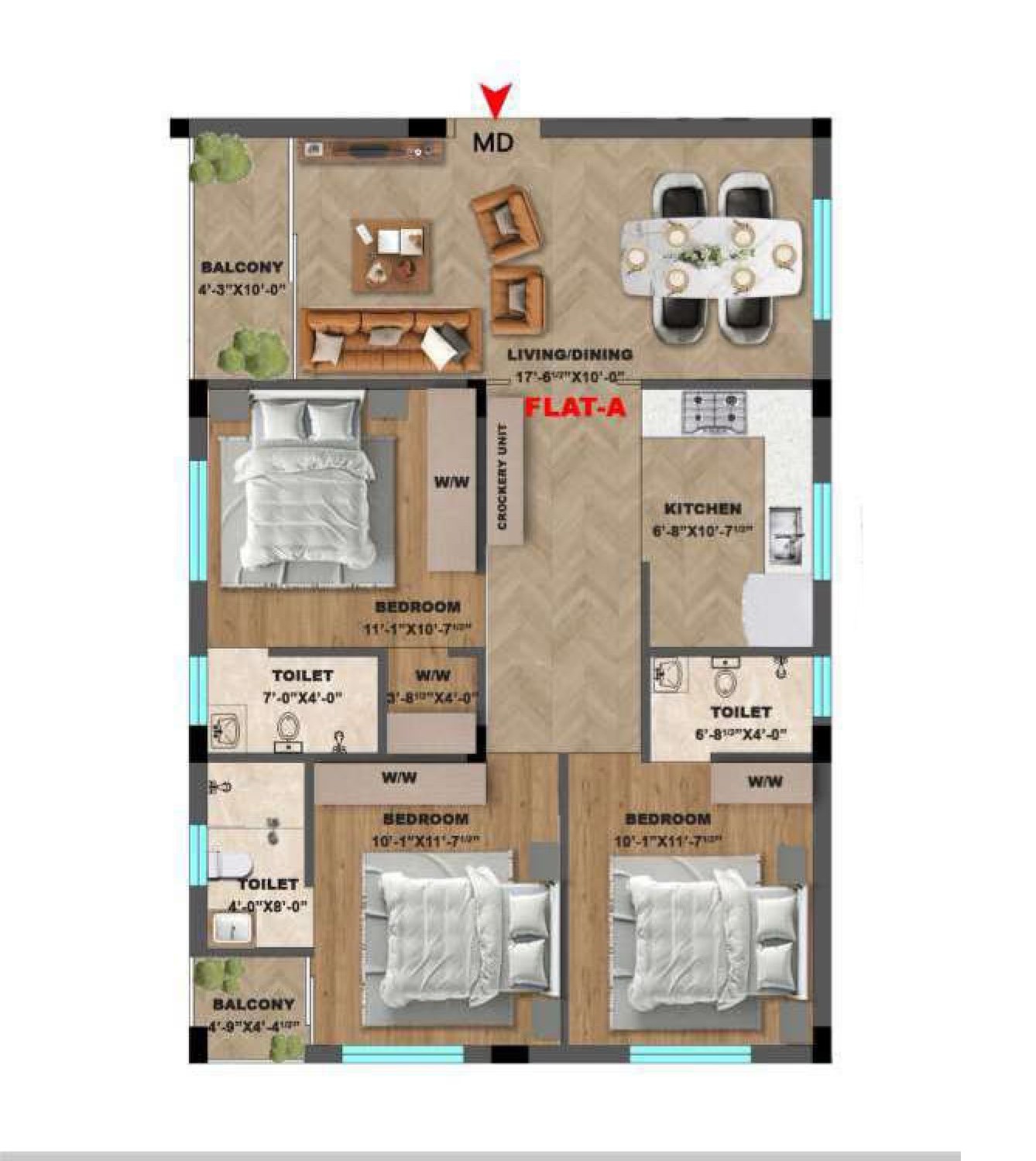 Unit sizes of the Anugragha Usha Palace ranges from 783 - 1399 Sq.Ft .