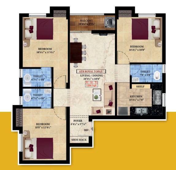 ATH Royal Topaz is an affordably priced apartment in Pammal. A developing residential locality that shares close proximity to the bustling GST Road and the International Airport. Promoted by Asset Tree Homes these are beautifully planned apartments with nice 2 & 3 BHK configurations. That's not all all the flats here have been built with 100% Vaastu so that residents can live a prosperous life here. The carpet areas of these flats start at 901 Sq.Ft and goes all the way up to 1206 Sq.Ft. Come check out these apartments that come along with several nice amenities like covered car parking, CCTV Camera, lifts EV Charging point, and so on.