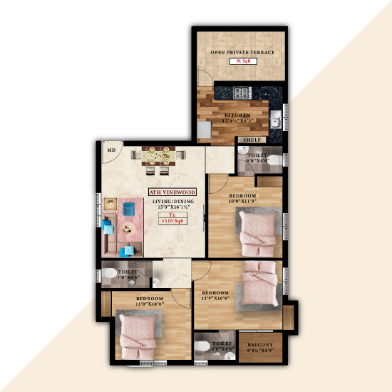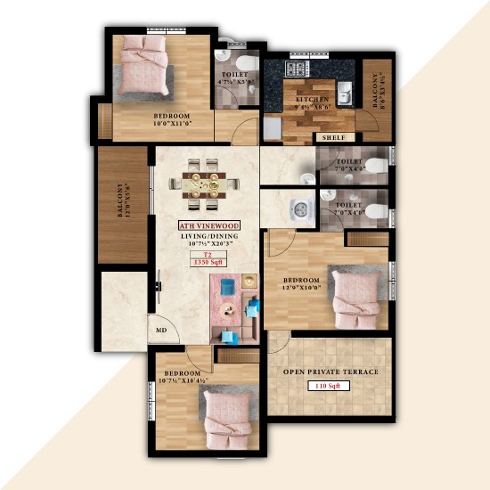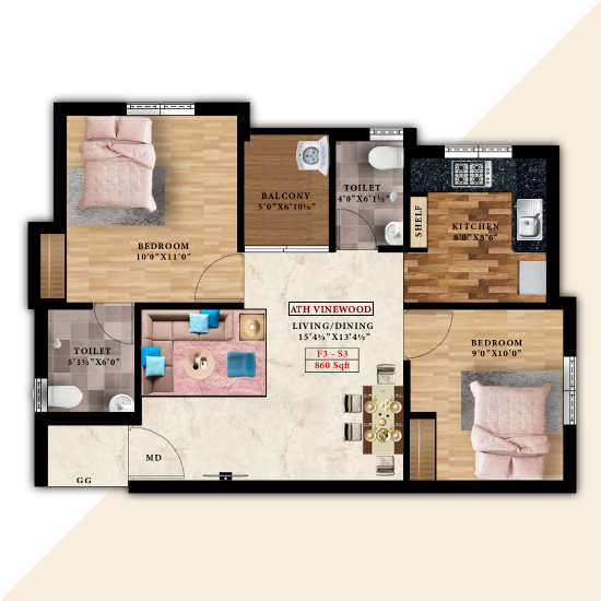 ATH Vasantham is an ultra-modern apartment in Pammal. Made elegantly with the finest finishes and fixtures. This is a prime residential area where you can find premium apartments at affordable prices. Promoted by Asset Tree Homes this is a single-tower apartment complex that totally holds 8 flats. Here both 2 & 3 BHK flats are available for sale with 100% Vasthu plans. The carpet area of these flats ranges from 860 - 1449 Sq.Ft. Each apartment has a nice balcony where families can make beautiful memories. Plus each apartment here enjoys its very own covered car parking, lift, EV charge point, and video door phone.