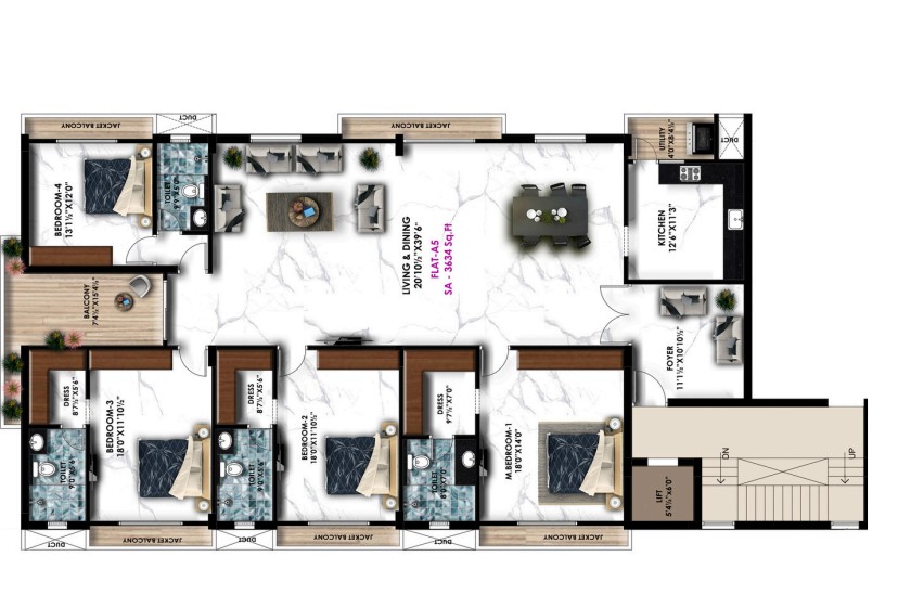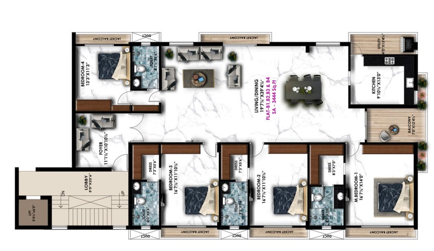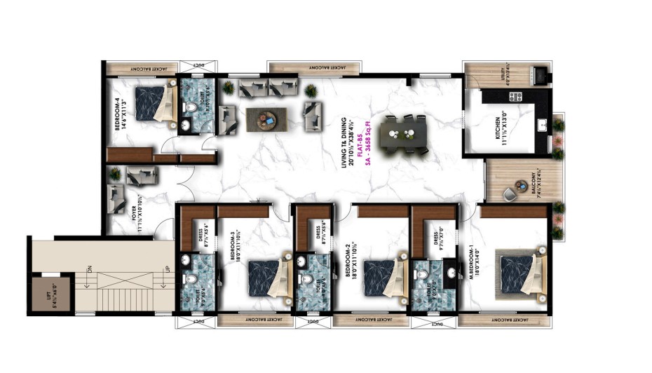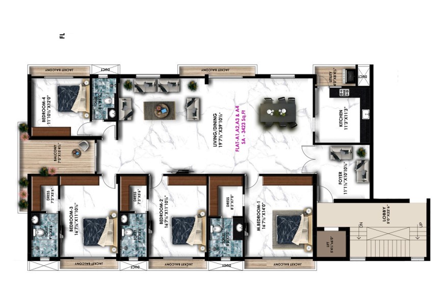 Unit sizes of the Avinya Alpha ranges from 3423 - 3658 Sq.Ft .
