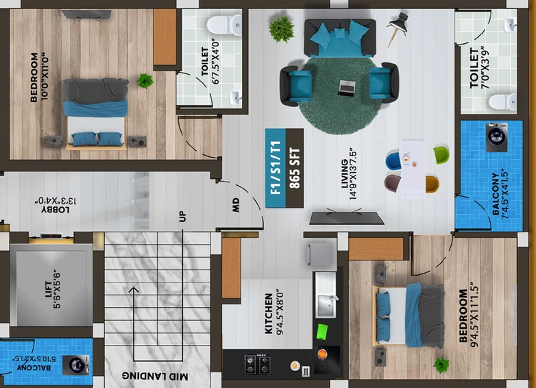 BC Midtown is a sizable apartment that is crafted with ultra-modern architecture. Developed by Bharathi Construction these are 2 BHK flats in Kundrathur. An emerging suburban area surrounded by a clean and pollution-free environment. The unit size of these flats ranges between 733 Sq.Ft. What's special about these flats is that they have 100% vasthu. Lifts, CCTV cameras and covered car parks are also provided. As these flats are located in a developing area they are affordably priced. So they make a wonderful choice for both investors and end users.