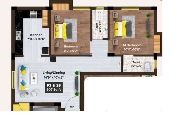 BC Orchid is an ultra-modern apartment in Pallavaram. One residential area along the busy GST Road is bustling with residential development. Presented by Bharathi Construction, a well-known real estate developer in Chennai, this is a nice single tower complete. Here you can find a variety of 2 BHK apartments. Spread across a sizable plot there are 8 apartment units for sale. Nicely developed as a stilt plus 3-story structure, these flats all open out to beautiful balconies and come planned with car parking and lifts. The unit size of these flats ranges between 441 - 1080 Sq.Ft, so you can come and choose the unit perfect for you and your family.
