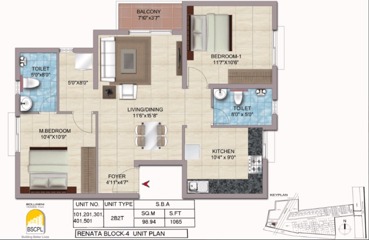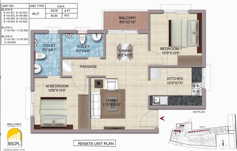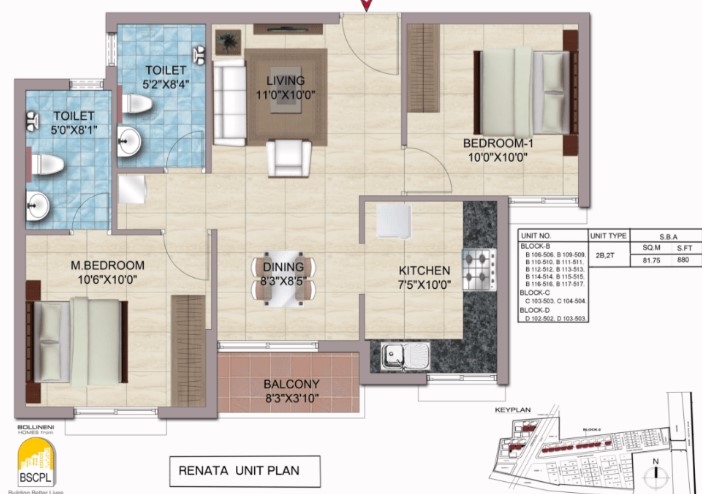 Are you searching for a new residence in Ottiambakkam, Chennai? If so, do not miss out on viewing the Bollineni Renata from BSCPL Infrastructure Limited. The most attractive feature? The property is available for immediate occupation. No more delays; just pack your belongings, and you are ready to move in. The amazing community features 225 flats, all part of a modest Stilt + 5 Floors layout. You have the choice of cosy 2 BHK and 3 BHK houses, starting from a snug 880 sq ft to 1200 sq ft, which suits both beginning families or those looking to settle down.