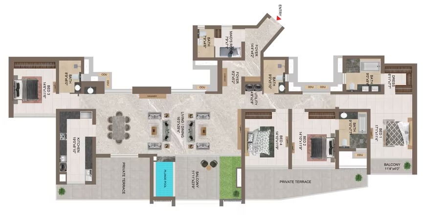 Unit sizes of the Casagrand Mercury ranges from 1190 - 3952 Sq.Ft .