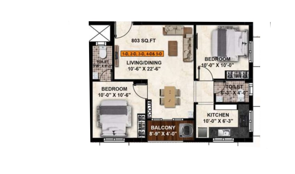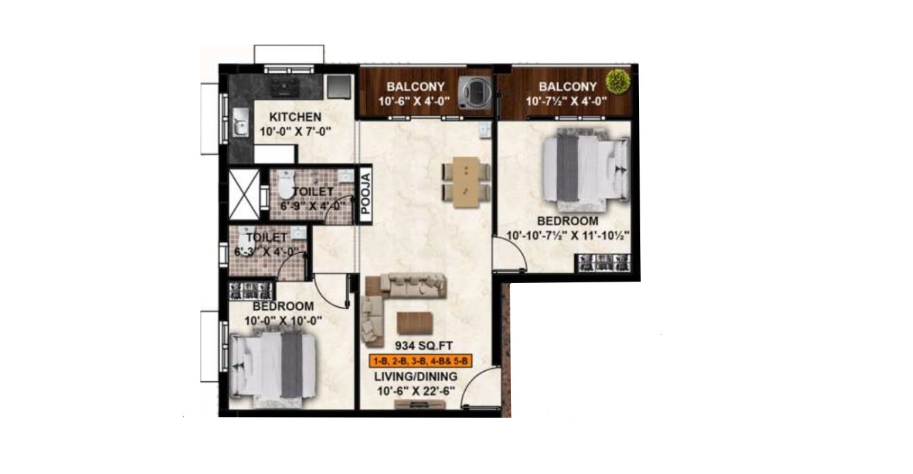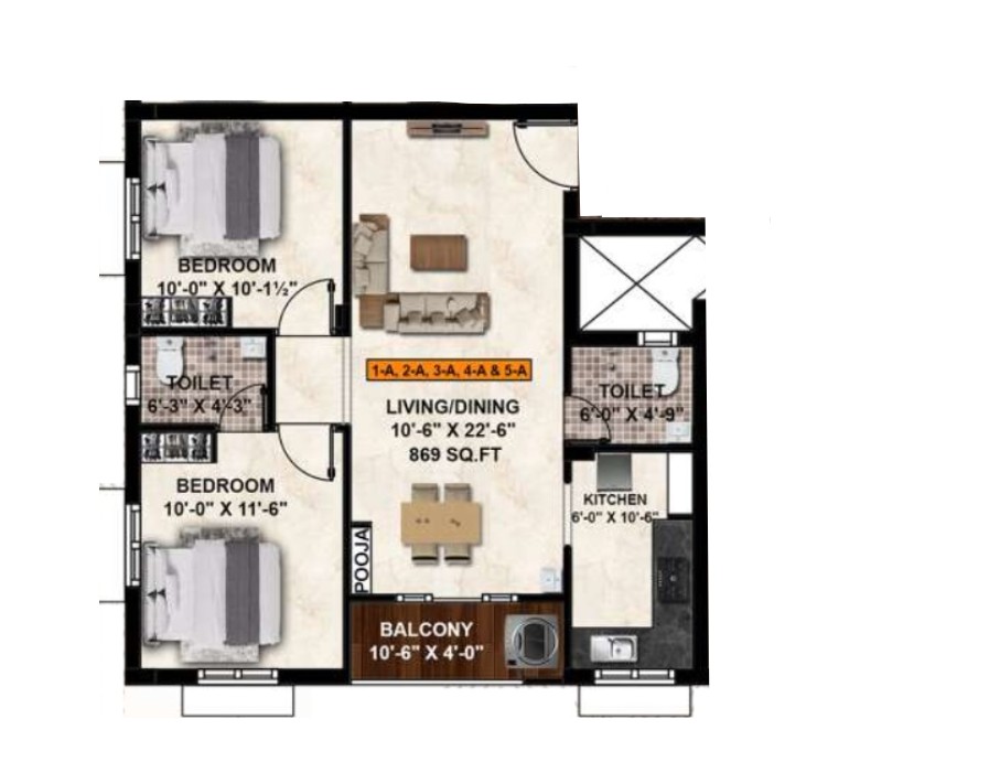 With its striking Stilt plus four floors Building structure consisting of only 20 superb units and 2 BHK flats, it stands out for its uniqueness. These homes vary in size from 803 sq ft to 934 sq ft and are designed in such a way that every corner is functional, with natural light, thus making the flat suitable for young professionals and growing families who are looking to buy their first big milestone.
