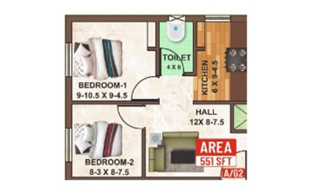 Unit sizes of the Crest Quinn ranges from 415 - 551 Sq.Ft .