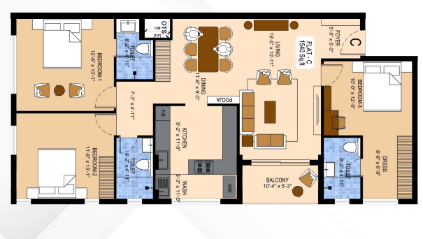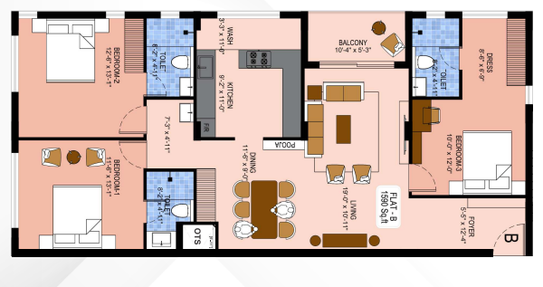 Unit sizes of the Gatala Mahadev ranges from 1540 - 1800 Sq.Ft .