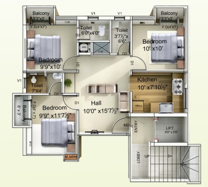 Gee Ge Radhamani is a wonderful project developed by Gee Ge Structural. These flats are a wonderful choice for those looking for ample privacy and a serene neighbourhood. This is a stilt plus 3-story apartment for sale in Pammal, which is a developing residential area, famous for its charming bazaars and proximity to the GST Road. Here, all the flats are configured as affordable 3 BHK units with a unit size extending 990 Sq.Ft. One apartment per floor configurator is maintained here. All the flats open out to well-placed balconies, and they also enjoy lifts and a covered car parking facility.