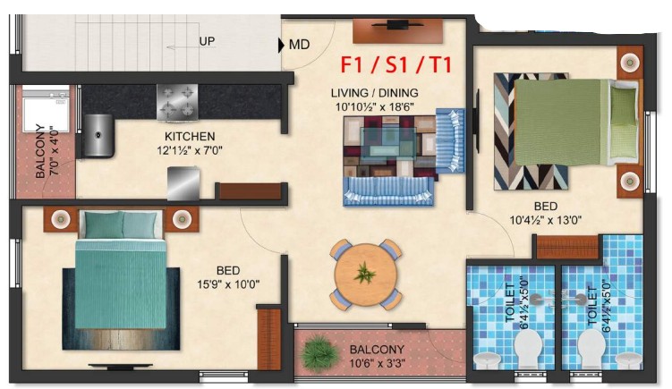 GVS Foundation presents GVS Vijaya in Ambattur, Chennai. As you learn from the name Ambattur, this is a prominent property with quick access to shops, temples, banks, bus terminus, and much more to make it perfect for a residential stay. Coming on to the construction, the GVS Vijaya is developed as an apartment with 2 bedrooms in each of the 6 units. The unit sizes range between 955 sq.ft. and 982 sq.ft. which is expansive enough for accommodating your family of even more than 4 or 6 members.