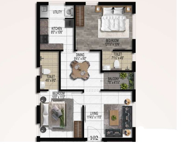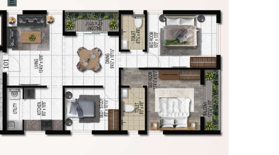 Unit sizes of the Harmony Gayatri ranges from 926 - 1153 Sq.Ft .