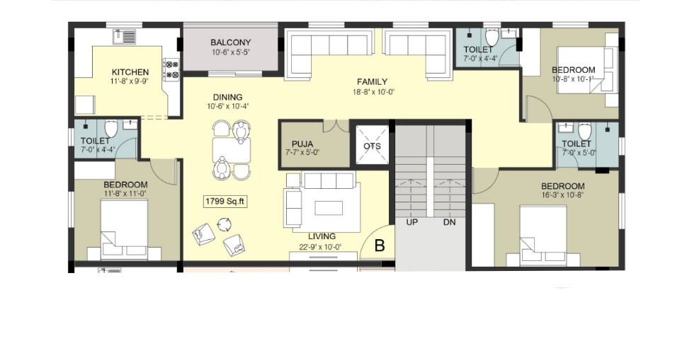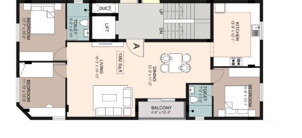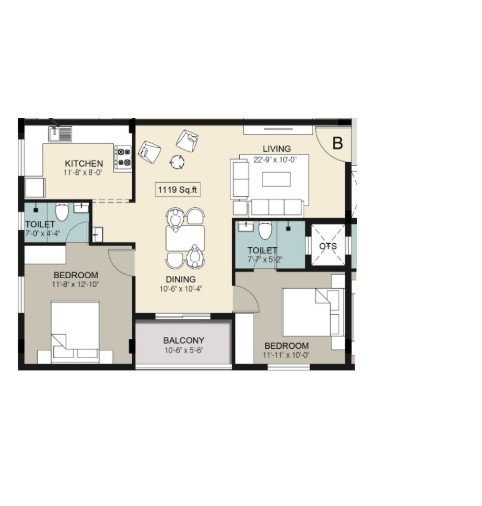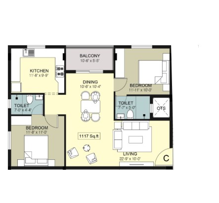 Unit sizes of the Kamalam Vintage ranges from 1117 - 1820 Sq.Ft .