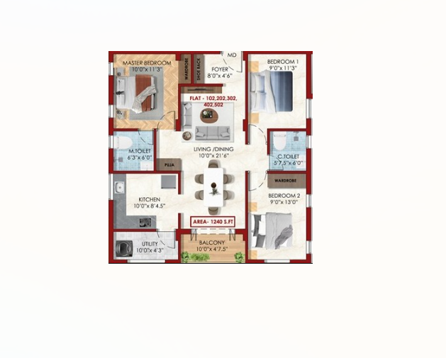 KCee Sabari, an incredible project by KCee Properties Pvt Ltd, is a site that portrays contemporary lifestyle but still holds a classic charm, positioned in K K Nagar, Chennai. The development is ideal for those who love to have both in their home style and utility and it consists of spacious 3 BHK flats that give it all. KCee Sabari in K K Nagar has 40 units exclusively built on Stilt + 5 floors, providing residents with a sense of home as well as their own privacy in a small community feel inside the society. Out of the landscape, beautiful curated gardens are a homage to comforting enclaves, which are in a refreshing setting over 1240 sq ft, where every walk or jaunt within its confines is a therapeutic moment away from the city's chaos. What differentiates this project from others is its location. An already established area, with shopping avenues and all other things you need, makes life easy with everything at your fingertips. Every area of your future, if you choose to make it your home, reflects care, comfort, and class