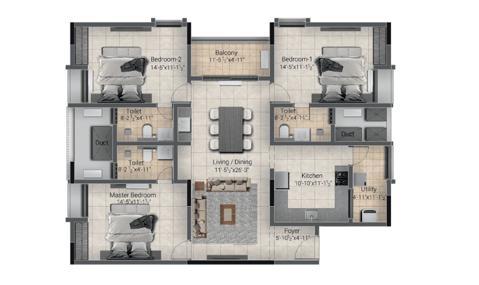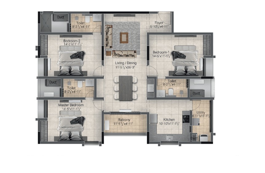 Krishna Zirve is a towering project that offers apartments in Saligramam. A tranquil developing locality surrounded by many prime residential and commercial neighbourhoods. This high-rise structure is set out to transform the skyline of this residential hub beautifully with its 3 BHK apartments. A grand community that goes beyond 1 Acre and houses 110 flat units. All the apartments in this structure are also opulently made with grand interiors and carpet areas ranging between 1815 - 1819 Sq Ft. Covered car parking, a gym, a multi-purpose hall and many more luxurious amenities are included in this serene community. Come check out this property by Krishna Constructions.