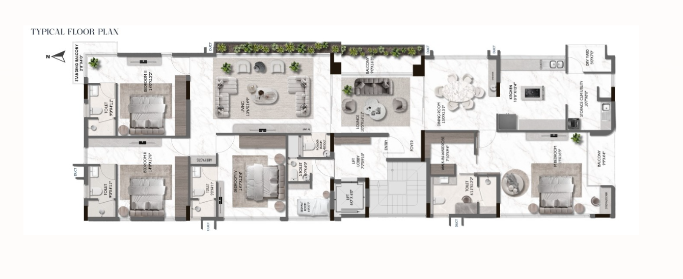 The extravagant lifestyle neighborhood offers a 4 BHK apartment, which covers 3320 sq ft., it consists of a luxurious living whole unit for each apartment. Apart from the great location, the residents will also have the luxury of selecting high-end amenities that will improve their lifestyle, such as a private Gym and a beautifully designed Terrace Garden that will allow them to enjoy the peaceful and relaxing atmosphere. Legendary Pride in Nungambakkam gives an unbeatable combination of prestige, vastness, and quiet luxury amidst the most sophisticated neighborhood of Chennai. So, don’t delay any further and claim your spot right away because such opportunities do not last long.