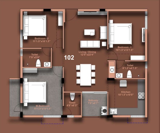 Unit sizes of the MP Mavis ranges from 1276 - 1343 Sq.Ft .