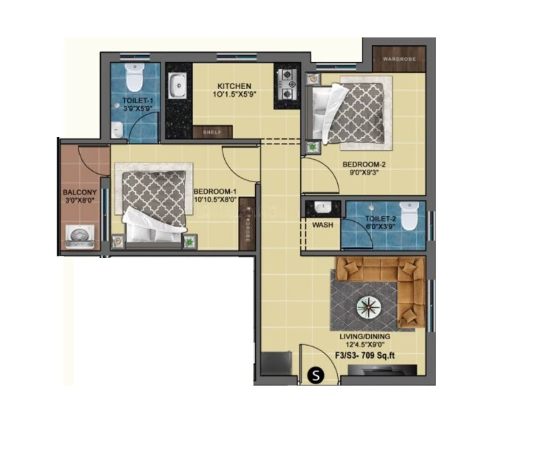 Unit sizes of the MP Trinity ranges from 709 Sq.Ft .
