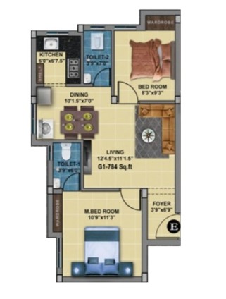 Unit sizes of the MP Winter ranges from 644 - 784 Sq.Ft .