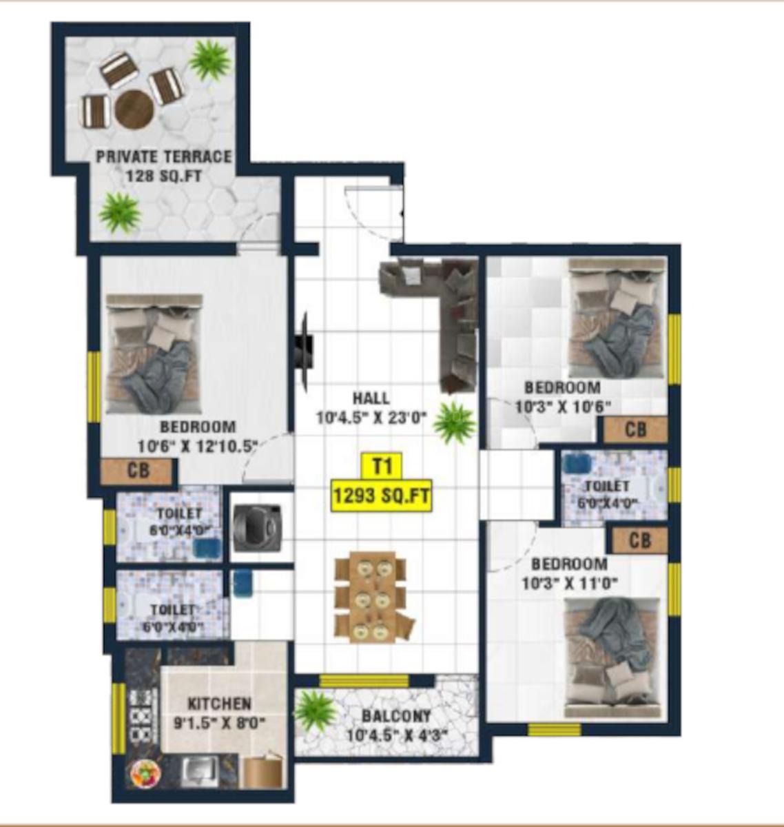 Nakshatra is an ultra-modern apartment in Pammal, brought to us by the well-known Royal Nest Home. Pammal is an emerging residential locality that's developed so much, and this is the right time to invest or plan to live here. This project comprises 3 BHK apartments that have a carpet area ranging from 1146 - 1293 Sq.Ft. So either of these opulent units in this apartment comprises a total of 8 flats. Spread across 0.08 Acres this project offers a nice private terrace, balcony, covered car parking, and so on. Come check out this affordable property now at Pammal.