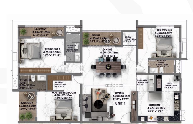 You may choose from a wide variety of combinations that NCC Urban Infrastructure Ltd offers, firmly defining your preferences. Each unit is carefully designed to exude a cozy and regal vibe. The particularly created three-bedroom house makes it easier to unwind in luxury. To suit your preferences, each apartment has a size of 2425 square feet. Your main accessibility throughout existence will be a completely peaceful home with many aides. It's an uncommon combination to find modern design that complements older architecture. The entire building and a sizable parking lot are guarded and constantly monitored.