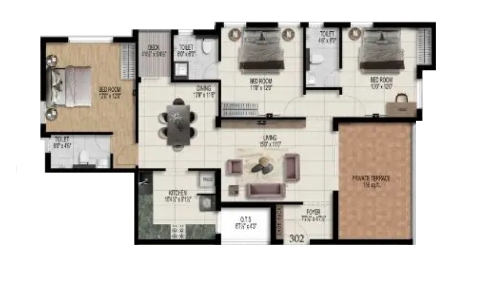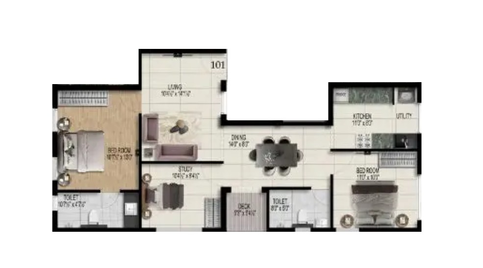 Unit sizes of the Pearl Cinderella ranges from 946 - 1350 Sq.Ft .