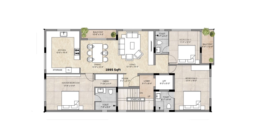 Unit sizes of the Pearl Dew ranges from 1995 Sq.Ft .