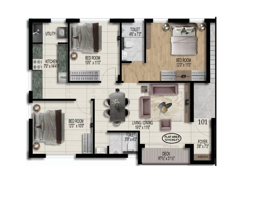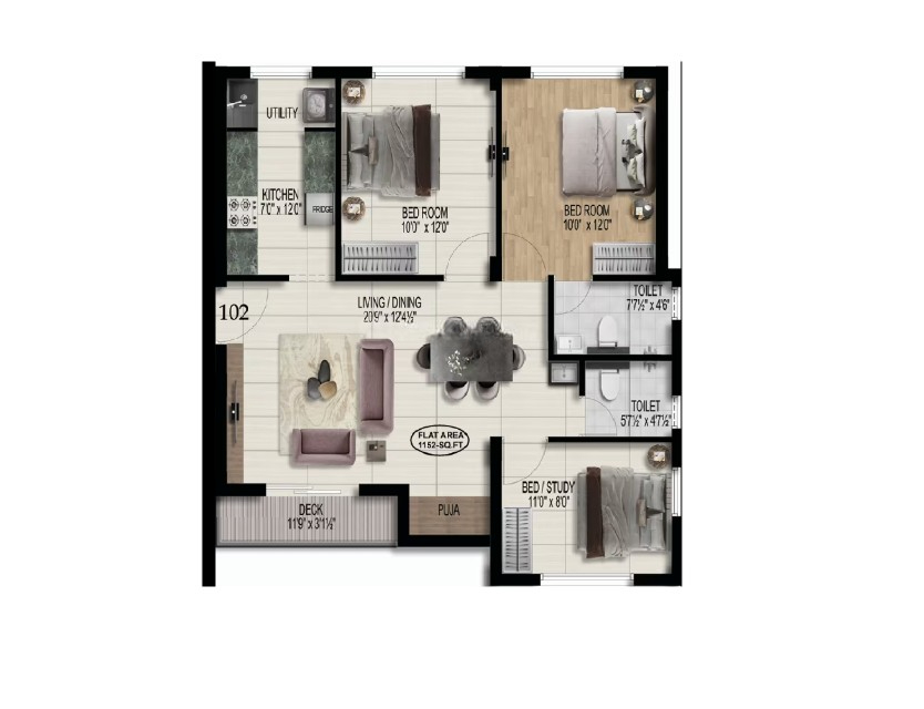 Unit sizes of the Pearl Ebony ranges from 1152 - 1214 Sq.Ft .