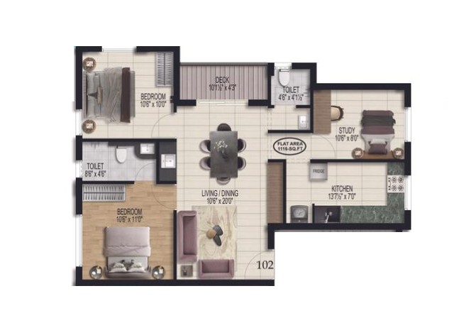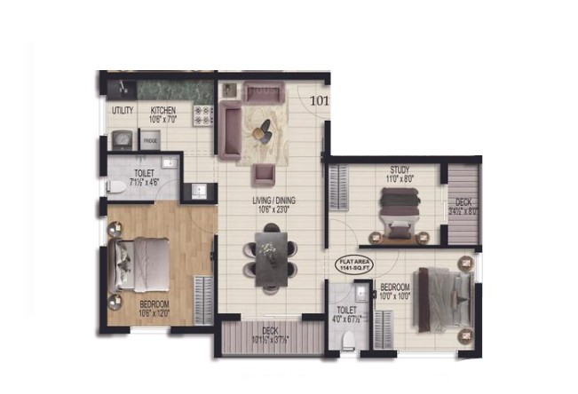 Unit sizes of the Pearl Emerald ranges from 1116 - 1141 Sq.Ft .