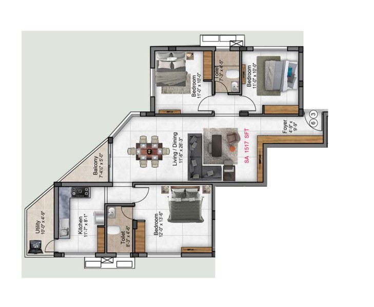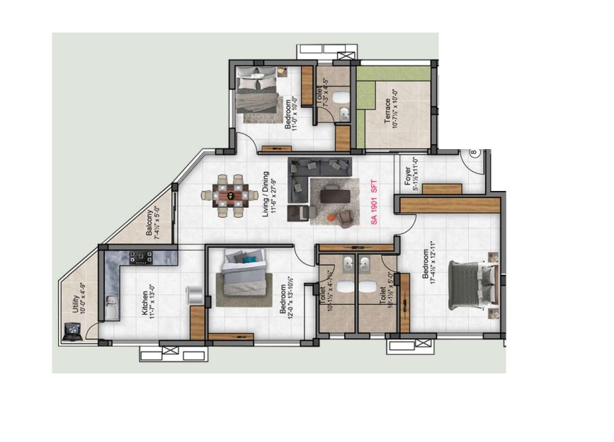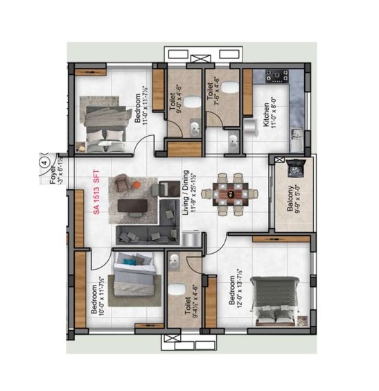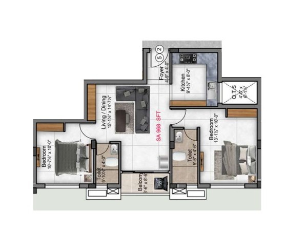 Unit sizes of the Preetha Sivaji Gardens ranges from 968 - 1901 Sq.Ft .
