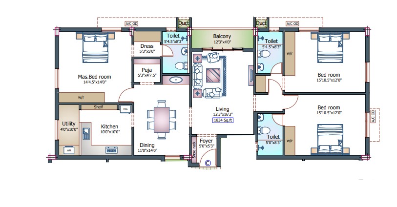 Unit sizes of the Pushkars Gettu Apartments ranges from 1343 - 1834 Sq.Ft .