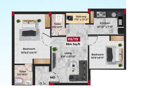 Rainbow is a beautiful project developed by Bharathi Construction. Just like the project's name, it's a vibrant property that offers flats in Polichalur. Here all the flats are configured as 1 & 2 BHK units and they are available in a variety of unit sizes. The unit size of these flats ranges between 560 - 864 Sq.Ft, and they are configured with practical floor plans. Built across a site that spans 0.73 Acres there are 7 apartment units for sale. Built with ultra-modern design and architecture these flats come planned with covered car parks, lifts, rainwater harvesting and so on. Located in a developing area these flats are surrounded by a calm environment.