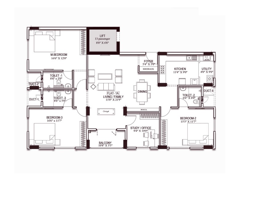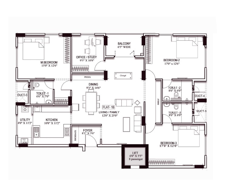 Unit sizes of the Ramaniyam Regal ranges from 2071 - 2323 Sq.Ft .