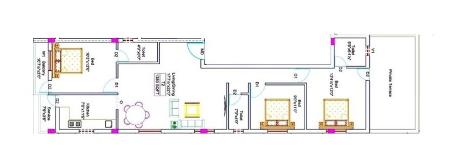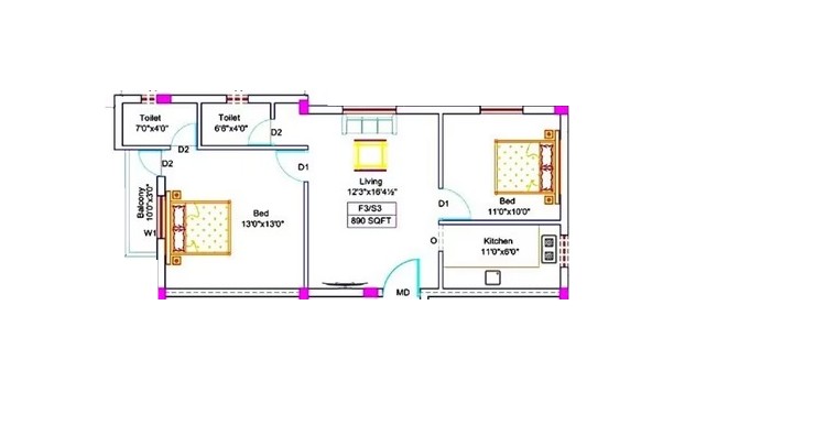 Unit sizes of the RK Sai Varshini ranges from 890 - 1460 Sq.Ft .