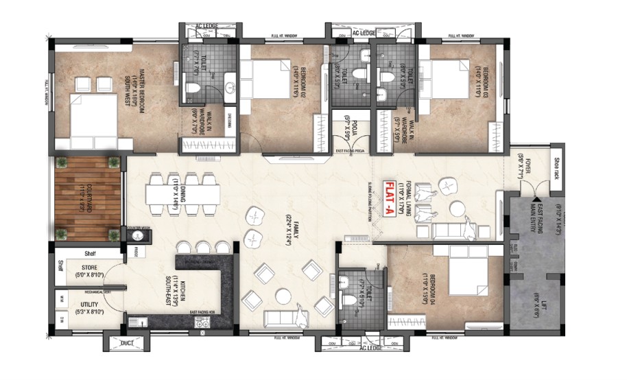 Unit sizes of the Rohini The Masterpiece ranges from 2672 Sq.Ft .