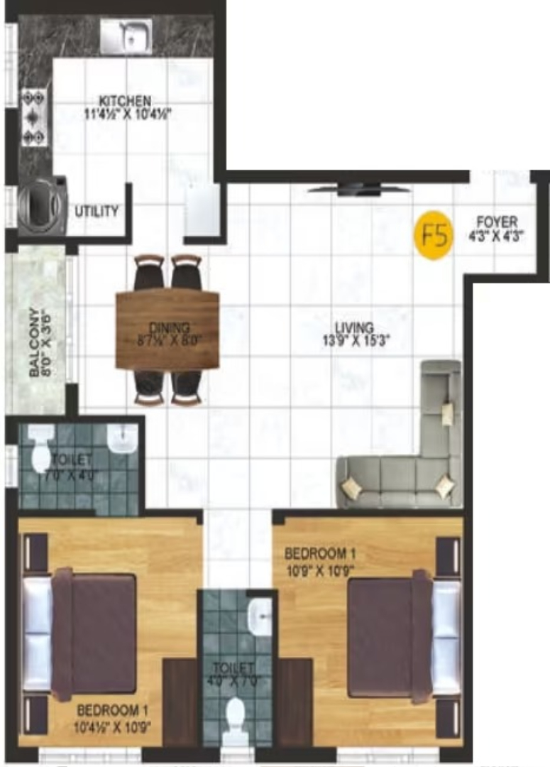 Royal Sabari is an ultra-modern apartment in Valasaravakkam, that has a elegant vibe to it. Developed by Poorna Builders this project is entirely made of 2 BHK flat units. However, they are available in different carpet areas ranging from 1029 - 1172 Sq.Ft. So each unit in this contemporary residence has spacious units where families can live in comfort. In total, this gated community offers 15 units in its stilt plus 3 story block. Plus each resident here enjoys nice lavish balconies where families can make beautiful memories. Plus the residents here feel safe with the CCTV surveillance and generator power backup facility.
