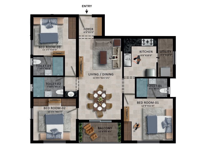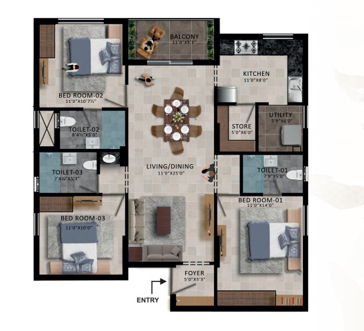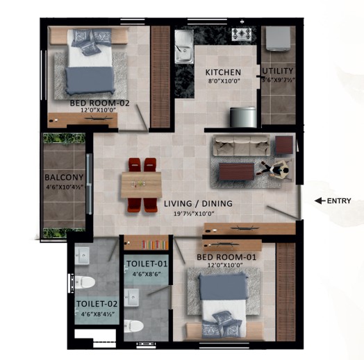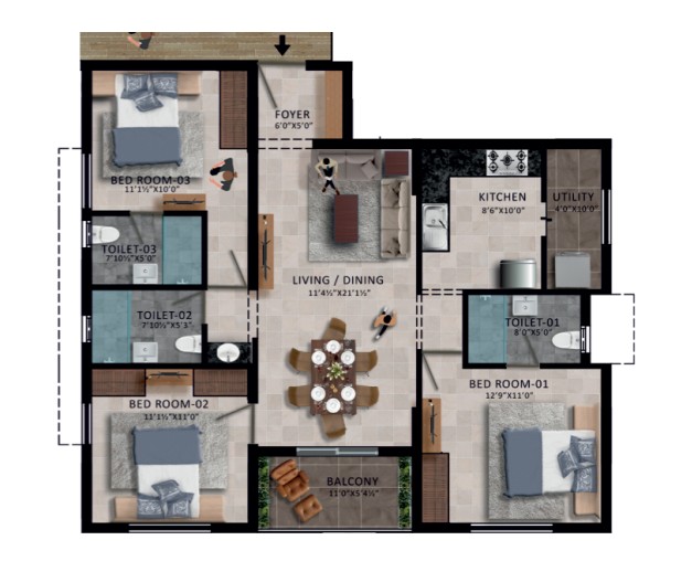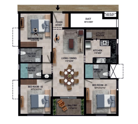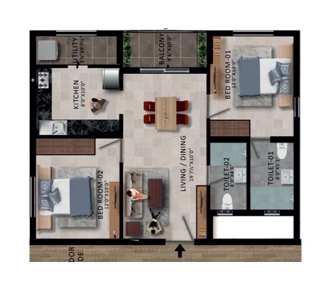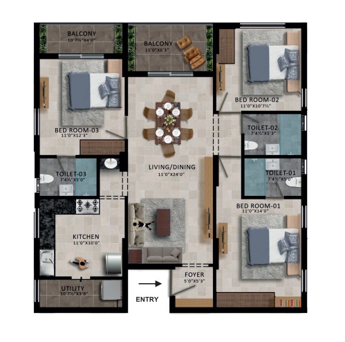 Unit sizes of the RWD Waterfront ranges from 1046 - 1703 Sq.Ft .
