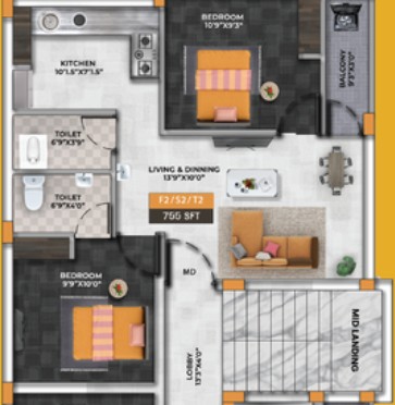 Sai Silverstone is an exclusive apartment tower that offers 6 units planned across a nice stilt plus 3 story block. Developed by Bharathi Construction these are premium flats in Kundrathur. A traditional suburban area that is now bustling with residential development. Here, all the flats have equal configurations as 2 BHK units and have a unit size extending 755 Sq.Ft. Affordably priced, these flats are a wonderful choice for both investors and end users. Overall, this is a nice residential neighbourhood surrounded by ample greenery and open spaces. Each homeowner enjoys car parking space along with lifts.