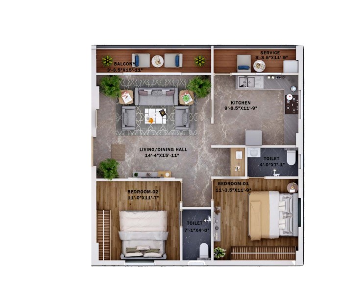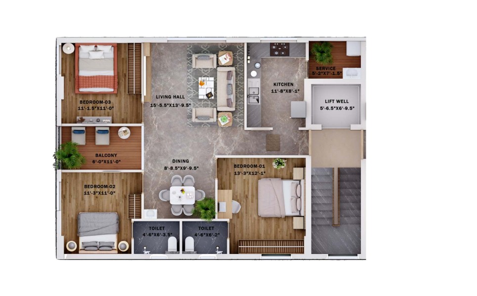 Unit sizes of the Sannareddy Sivakami Residency ranges from 1109 - 1378 Sq.Ft .