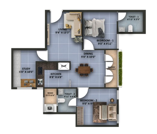 In just about 5km from the main Siruseri IT Park, here you have the locale called Kelambakkam. This is where we have the property called Shantiniketan Vega. The property extends to apartments of 140 total counts. Much to excite you with surprise, the units start from as compact as 753 sq.ft. and range up to 997 sq.ft. This is made possible only with the single, double and triple bedroom structures made available here. As apartments, this gives you holistic ambience and reasons to book yours. So, figure out which ones would suit you.