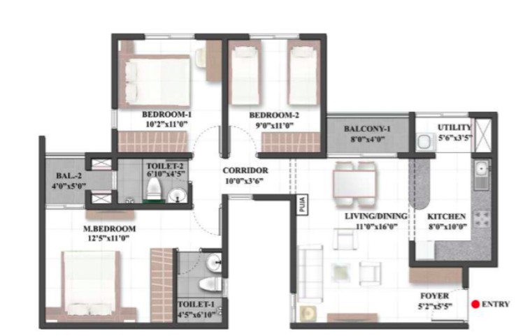 Shriram 122 West is a future-ready township developed by the famous Shriram Properties, which is well-known in the real estate market for coming up with premium yet affordable properties. Now they are here to delight us with these towering apartments in Mangadu, which is a wonderful residential area surrounded by many green fields and traditional temples. Spread across a site area of 4.98 acres, here you can find several high-rise towers planned within this county. In total, there are 930 apartments for sale, and they come equipped with many privileged amenities. These apartments are available in 2 & 3 BHK configurations and have a unit size range between 818 - 1282 Sq.Ft. Come check out these premium modern apartments and book our unit soon.