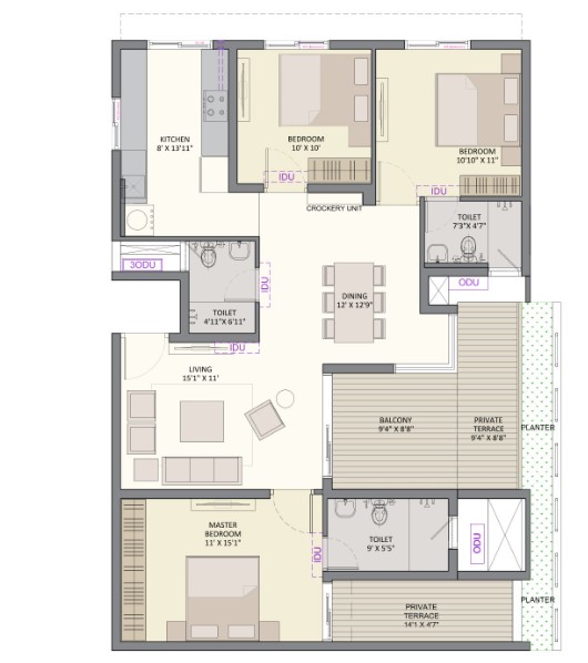 Sidharth Foundations and Housing presents this opulent township that offers several apartments for sale in Gerugambakkam, which is bustling with residential development. Named Sidharth Square, this gated community spans a site area of 2.44 acres and offers 209 apartment units. These flats are configured as 2 & 3 BHK, and they have a unit size ranging between 862 - 1724 Sq.Ft. These flats have Vasthu-compliant floor plans and designs perfect for a harmonious lifestyle. Along with that, residents also get to enjoy nice lifestyle amenities like a swimming pool, car parking, and lifts.