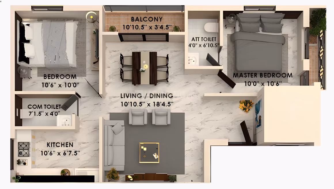 Unit sizes of the Sierra ranges from 1162 - 1188 Sq.Ft .