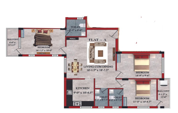 Sree Guru Sukriti is a simple apartment that boasts opulent carpet areas. Developed by the Sree Guru Foundation, there are 8 apartments planned in this stilt plus 3 story structure in Gowrivakkam. All the apartments are configured as 3 BHK units and have a unit size ranging between 1350 - 1357 Sq.Ft. So these flats are perfect for those looking for roomy apartments to accommodate all their needs. These apartments all open out to beautiful balconies and come planned with basic amenities like covered car parks, lifts, and rainwater harvesting systems. Located in a developing residential area, these flats are also reasonably priced and are a fine choice for those on a budget.