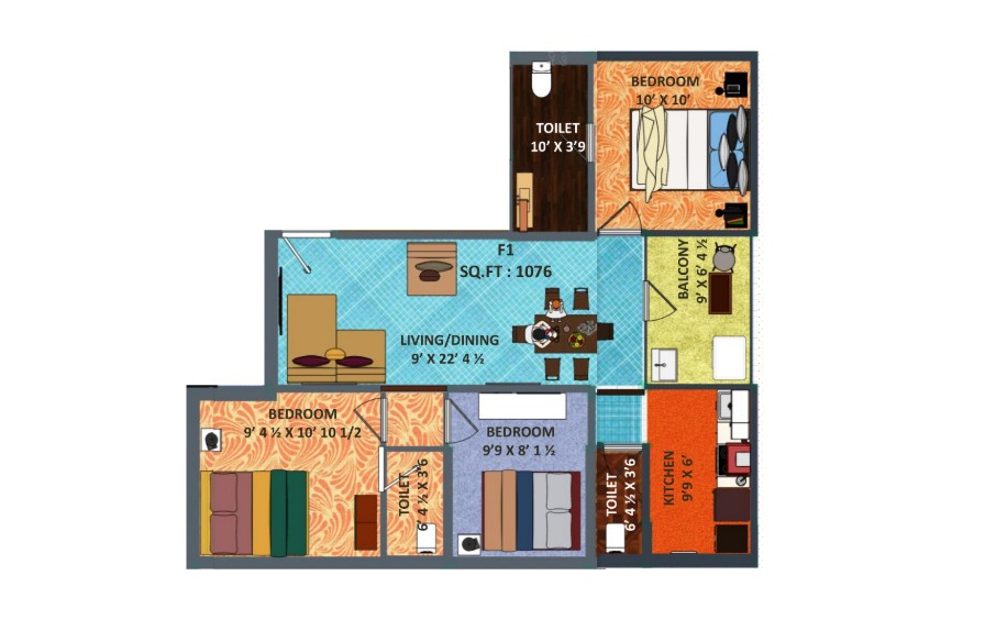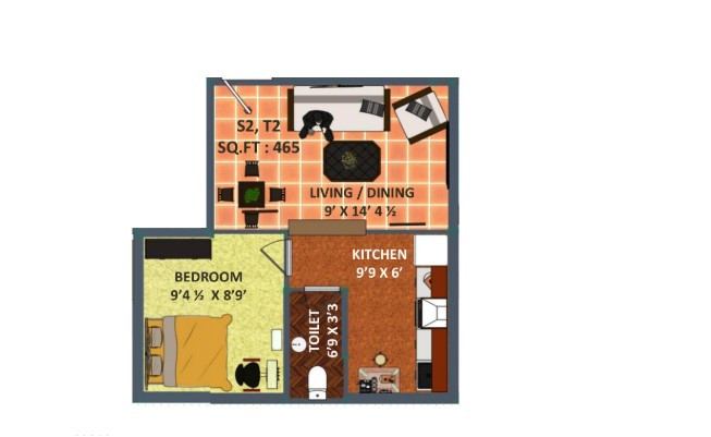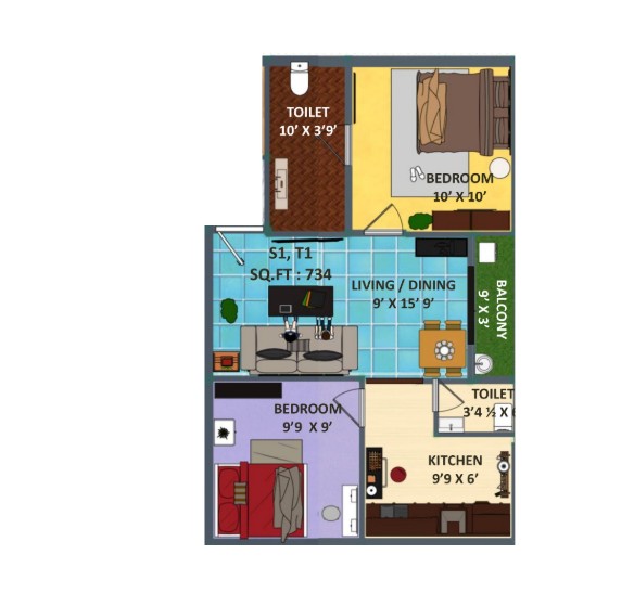 Unit sizes of the Sri Tanushree Garden ranges from 465 - 1076 Sq.Ft .