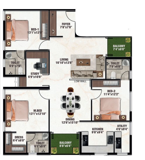 Swathis Ram Ghar is a premium project that offers apartments in Nandanam. Located along the Adyar River this is a prime residential cum commercial area. Promoted by Swathi Builders this is a prestigious property that boasts wonderful amenities along with a solid security system. All the apartments here are configured as 3 BHK units with nice carpet areas ranging between 1801 - 1806 Sq.Ft. Overall this apartment holds 6 flat units that all enjoy a power backup facility. Those looking to settle in a posh locality in Chennai must definitely check out this apartment.