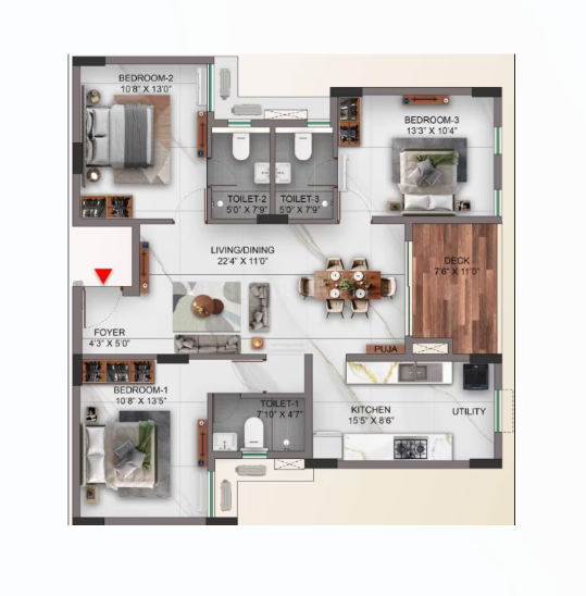 Welcome to TVS Emerald Verde Vista developed by TVS Emerald Haven Realty Limited a well-planned residential complex in Padur, Chennai. This project presents luxurious 2 BHK, 3 BHK and 4 BHK apartments measuring from 952 sq.ft to 2676 sq. ft., on a B+G+5 floor plan. Comprising a total of 355 carefully planned units, this project is designed to fuse contemporary living with comfort and class. Whether you're an expanding family or in search of ample living, this development has something for all lifestyles. The neighborhood is filled with amenities to enhance your daily life such as a swimming pool, gymnasium, yoga and meditation room, children's play area, multipurpose hall, indoor games room, and even a home theater indoors. For nature enthusiasts, BBQ areas and landscaped gardens offer the ideal place to unwind or host friends and family. TVS emerald Verde Vista in Padur also offers convenience daily with sufficient car parking, high-speed elevators, and 24x7 security. Do not miss taking the opportunity to schedule a site visit and experience living life the way it should be just perfect