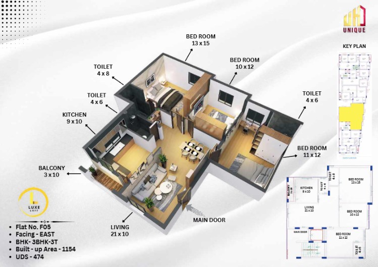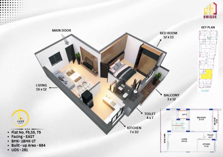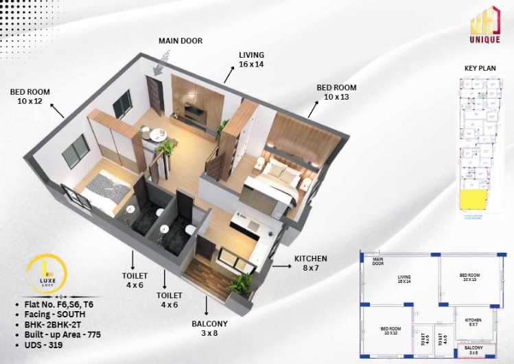 Each house has its start, and Unique Luxe Loft that starts with a feeling of warmth, simplicity and a lot of promise. Launched by Unique Homes and Developers, in partnership with the growing locality of Agaramthen, Chennai, this residential project presents you with cleverly designed 1, 2, and 3 BHK apartments and the sizes vary from 684 sq ft to 1327 sq ft. 23 exclusive homes are built, and hence life here is quiet, intimate, and refreshing. Built as a stilt plus four-floor community.